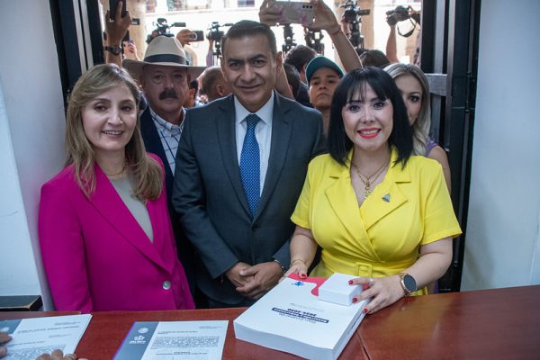 Salvador Zamora Zamora, Secretario General de Gobierno, y Cynthia Cantero Pacheco, Secretaria de Planeación y Participación Ciudadana, acudieron a la Oficialía de Partes del Congreso del Estado para entregar el Plan Estatal de Desarrollo y Gobernanza de Jalisco 2024-2030.
