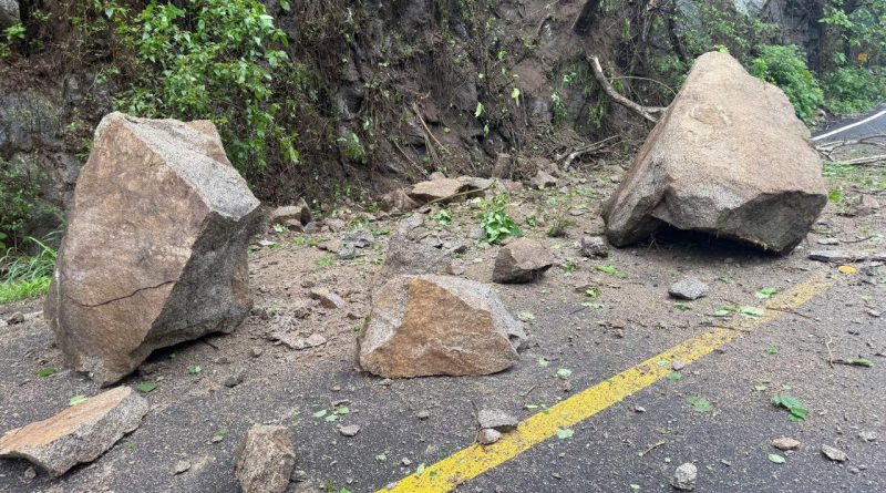 - Derivado de las fuertes lluvias, a consecuencia de los remanentes de «Erick», se registró la caída de rocas en la carretera Federal 200, cerca del paraje conocido como Barranca Honda.