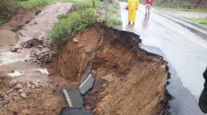 • Debido a las fuertes lluvias registradas en la zona, se ha generado un socavón sobre la carretera Federal 70, municipio de Mascota.