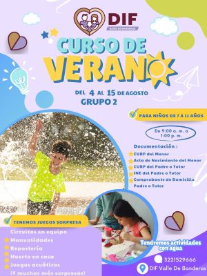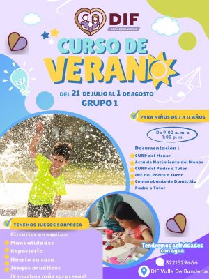 Como parte del compromiso con el bienestar y desarrollo integral de la niñez de Bahía de Banderas, el Gobierno Municipal que encabeza el presidente municipal Héctor Santana, en conjunto con el Sistema DIF municipal, dirigido por Margui Zúñiga, anunciaron el inicio del Curso de Verano 2025, que se llevará a cabo del 21 de julio al 1 de agosto para el grupo número 1 y del 4 al 15 de agosto para el grupo número 2, mismos que se llevarán a cabo en las instalaciones del DIF Bahía de Banderas.