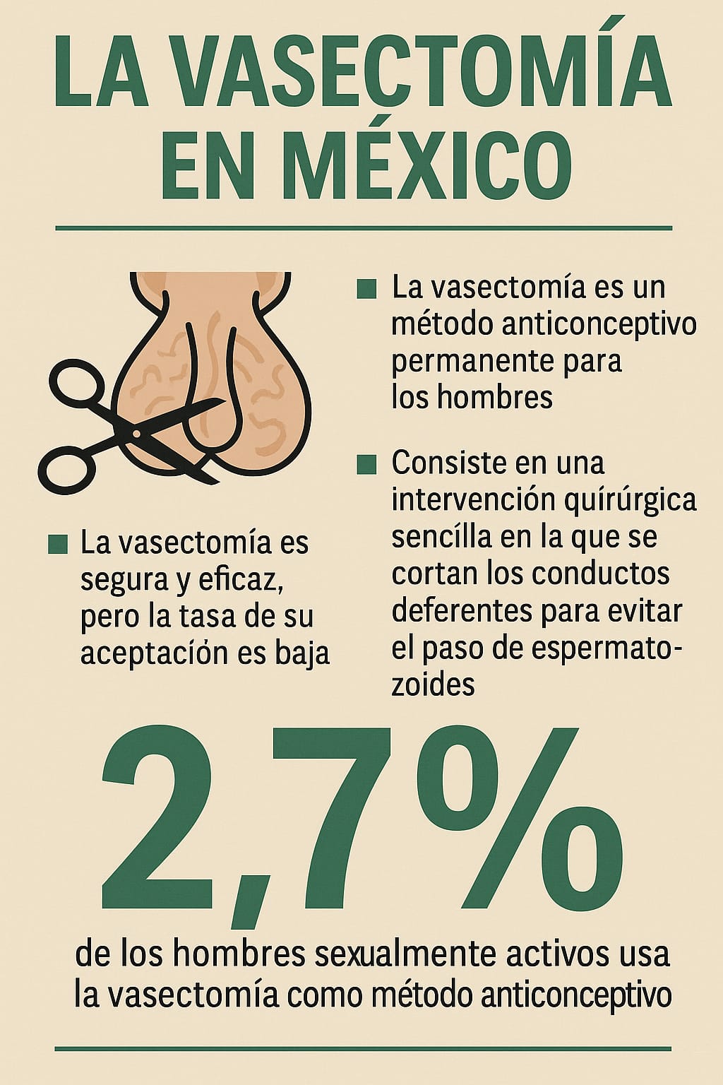- En México, la vasectomía es un método poco utilizado, a pesar de ser seguro y eficaz (con una efectividad superior al 99%).