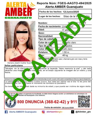 La Comisión de Búsqueda de Personas de Jalisco, en colaboración de Alerta AMBER Guanajuato, recibió el día 24 de junio del presente, la alerta de la menor de edad Dariana Joselin de 17 años, en base al número de reporte FGEG-AAGTO-494/2025, donde solicitaban que se realice la búsqueda por parte de la Célula de Seguridad Pública de Puerto Vallarta, ya que se tenían datos de que la menor se había venido a dicho municipio.