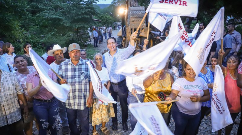 Con el corazón puesto en la sierra y el compromiso firme de mejorar la calidad de vida de todos los bahíabanderenses, el presidente municipal Héctor Santana García dio arranque a la obra de empedrado ahogado con huellas de rodamiento en concreto en la avenida principal de ingreso a la comunidad de Aguamilpa, una vialidad largamente esperada por las y los habitantes de esta zona.