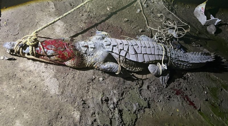 Matan brutalmente a cocodrilo cerca del Centro de Convenciones en Puerto Vallarta