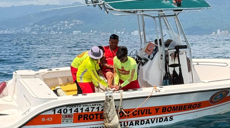 Puerto Vallarta, Jal.- En una exitosa intervención coordinada, elementos del área de Guardavidas lograron la captura de un cocodrilo de aproximadamente 3.7 metros de longitud en la zona sur del municipio, con el objetivo de preservar la seguridad de residentes y visitantes.