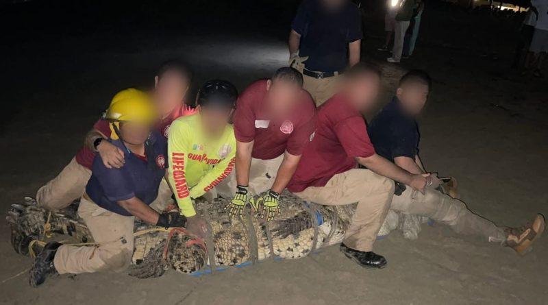 Y con todo esto, me llama la atención, fotos que han trascendido este fin de semana, de la captura de un cocodrilo de más de 4 metros de largo, en Bahía de Banderas. Y que fue observado durante varios días en distintas playas, hasta que por fin se cansó y se quedó inmóvil, por eso lo pudieron atrapar.