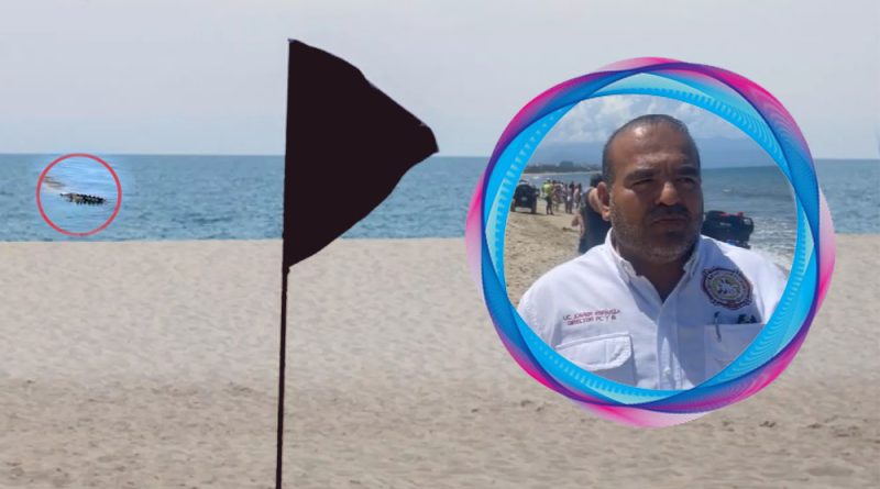 Protección Civil municipal encabezado por Xavier Esparza colocó banderas negras para prohibir el ingreso al mar, medida ordenada por el alcalde Héctor Santana para salvaguardar a los visitantes.