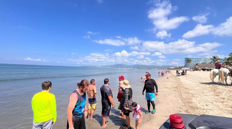 Bahía de Banderas.– Autoridades municipales de Protección Civil y Bomberos cerraron nuevamente el acceso a playas del municipio, tras el avistamiento de un cocodrilo en la zona hotelera de Flamingos.