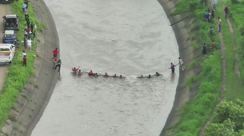 Como parte de las acciones, se colocó un chinchorro de gran tamaño en la zona y posteriormente se procedió a abrir las compuertas de la presa, lo que generó una presión en el flujo de agua que facilitó la visibilidad del menor.