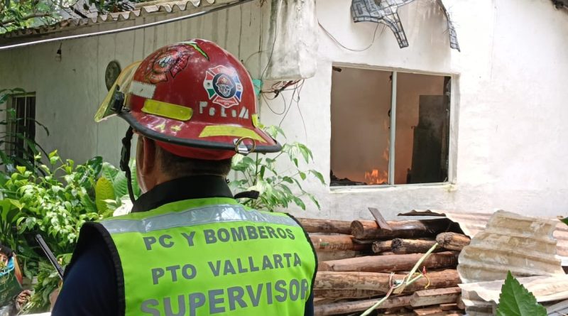 Puerto Vallarta, Jalisco |04 de agosto 2025. Elementos de la Dirección de Protección Civil y Bomberos de Puerto Vallarta respondieron de manera oportuna a un reporte de incendio registrado en una vivienda de la colonia El Nogalito.