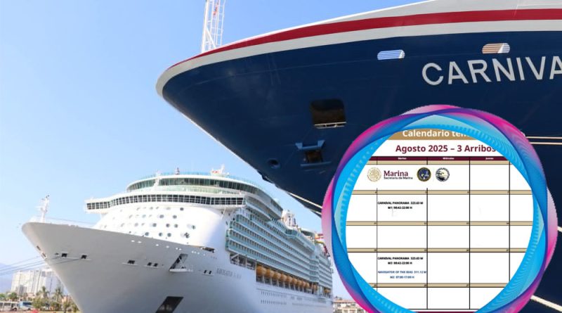 A diferencia de meses anteriores, durante agosto solo se tiene programada la llegada de tres cruceros turísticos a Puerto Vallarta, según el calendario oficial de arribos de la administración del Sistema Portuario Nacional (Asipona Vallarta).