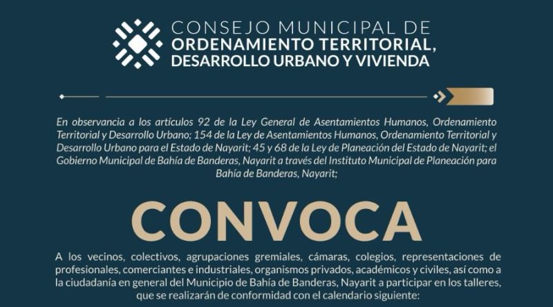 Se convoca a la ciudadanía de Bahía de Banderas a participar en talleres de Planeación Urbana