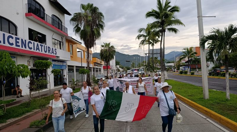 La mañana de este martes 2 de septiembre, trabajadores del Instituto Mexicano del Seguro Social (IMSS) realizan una marcha en Puerto Vallarta para exigir que se restituya el régimen de jubilaciones y pensiones de 1988, al que consideran más justo frente a los acuerdos posteriores.