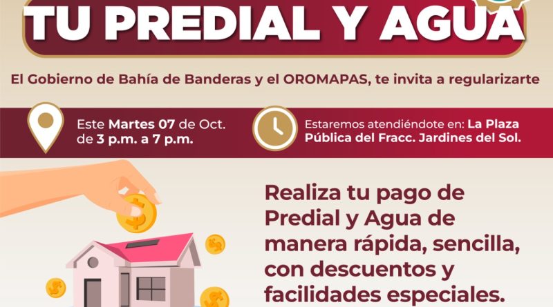 El Gobierno de Bahía de Banderas y el Organismo Operador Municipal de Agua Potable, Alcantarillado y Saneamiento (OROMAPAS) hacen una atenta invitación a la ciudadanía para regularizar sus pagos del impuesto predial y servicio de agua potable.