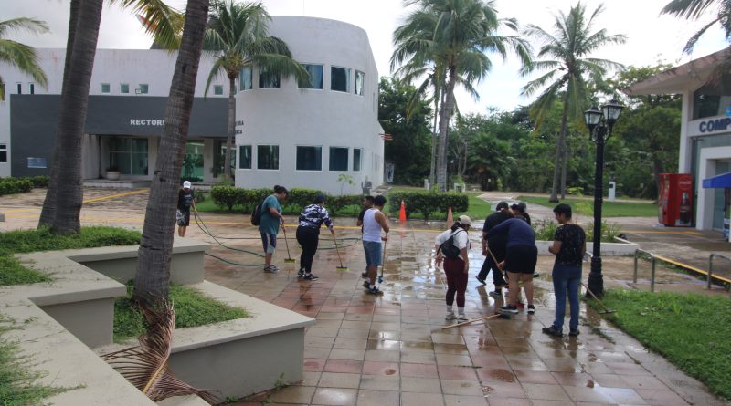 Desde el pasado domingo, se realizan los trabajos de limpieza en el acceso principal al Centro y continuaron el día de hoy, con la participación de estudiantes, profesores, personal administrativo, operativos y directivos, encabezados por la Dra. María Esther Avelar Álvarez, Rectora del Centro Universitario de la Costa, lo que permitió que se reanudaran clases en el turno vespertino.