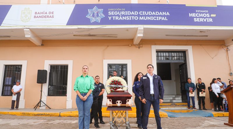 El Gobierno de Bahía de Banderas, que encabeza el presidente municipal Lic. Héctor Santana, realizó este lunes un sentido homenaje en memoria del policía municipal José Antonio González Alvarado, quien lamentablemente perdió la vida en un accidente de tránsito al término de sus funciones.