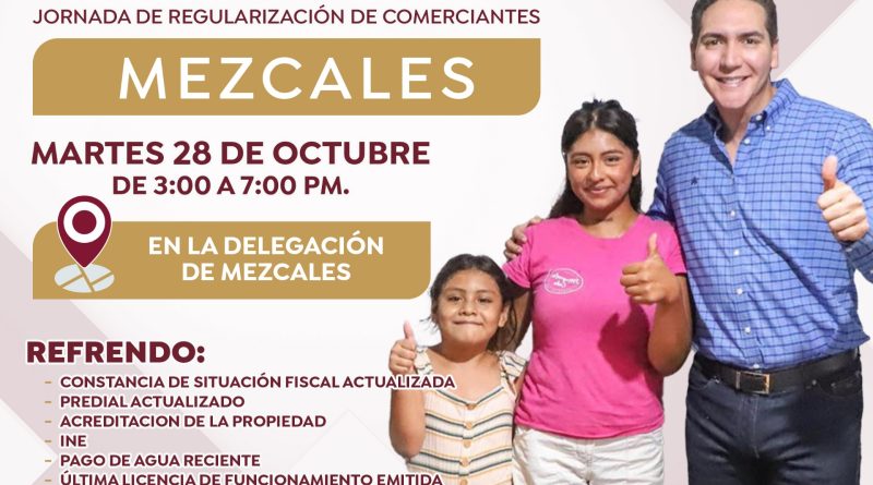 El Gobierno Municipal hace un llamado a los comerciantes de Mezcales y sus alrededores a acudir con su documentación completa, con el fin de aprovechar esta jornada que busca ofrecer un trámite ágil y accesible para todos los negocios del municipio.