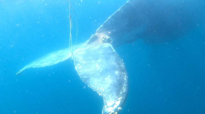 Rescatan a ballena jorobada enmallada en el Pacífico mexicano tras dos días de búsqueda intensa