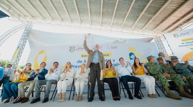 El gobernador del estado, Miguel Ángel Navarro Quintero, junto a su esposa, la doctora Beatriz Estrada Martínez, presidenta del Sistema DIF Nayarit, encabezó este martes en San Vicente, municipio de Bahía de Banderas, el arranque de la Estrategia Estatal de Salud Mental y Prevención del Suicidio “Elige Vivir”, en su etapa municipal.