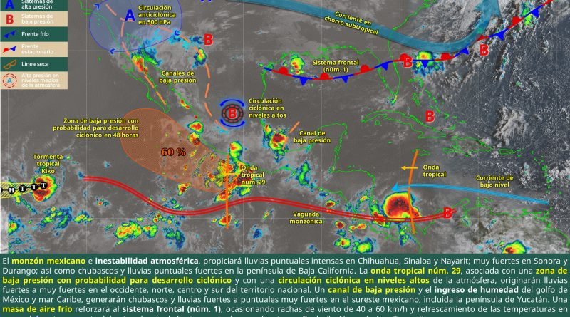 Leer másEste día, el monzón mexicano en combinación con inestabilidad atmosférica, propiciará lluvias puntuales intensas en Chihuahua, Sinaloa y Nayarit; muy fuertes en